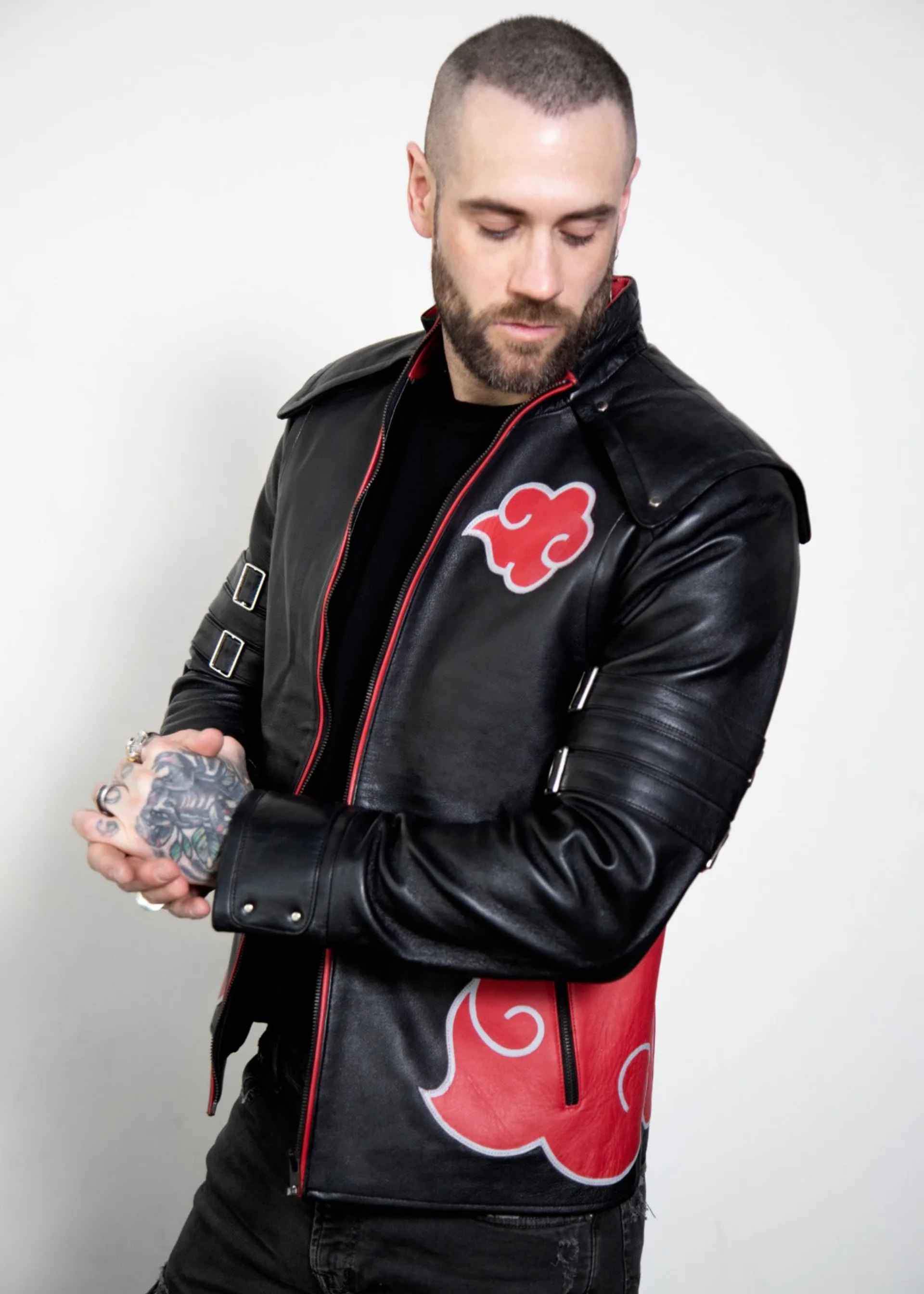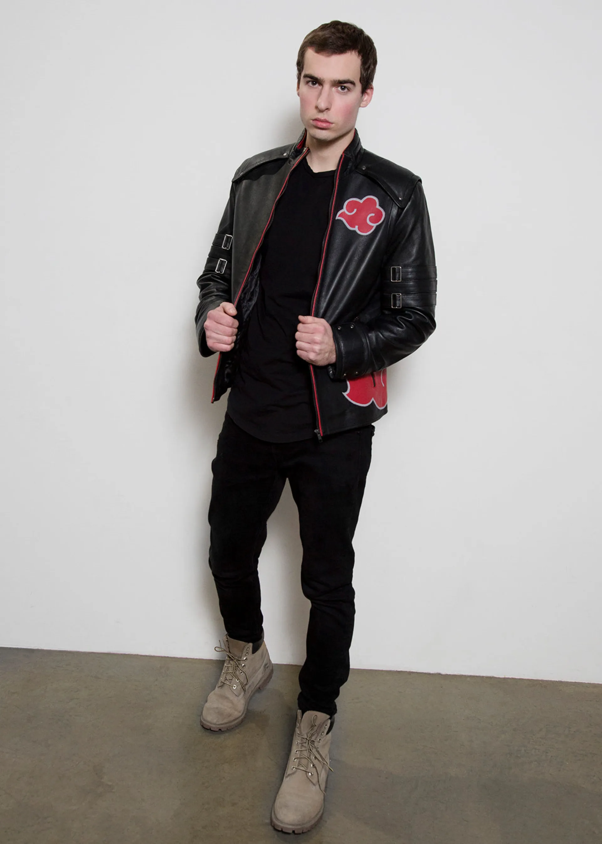 Controlling the ninja world from the shadow with some of the most powerful shinobi, It has been inspiring fear and respect since Itachi’s first appearance in the original manga. The iconic red cloud cloak worn by your favorite anime characters like Itachi, Sasuke and Pain is now available as a leather jacket for casual wear.