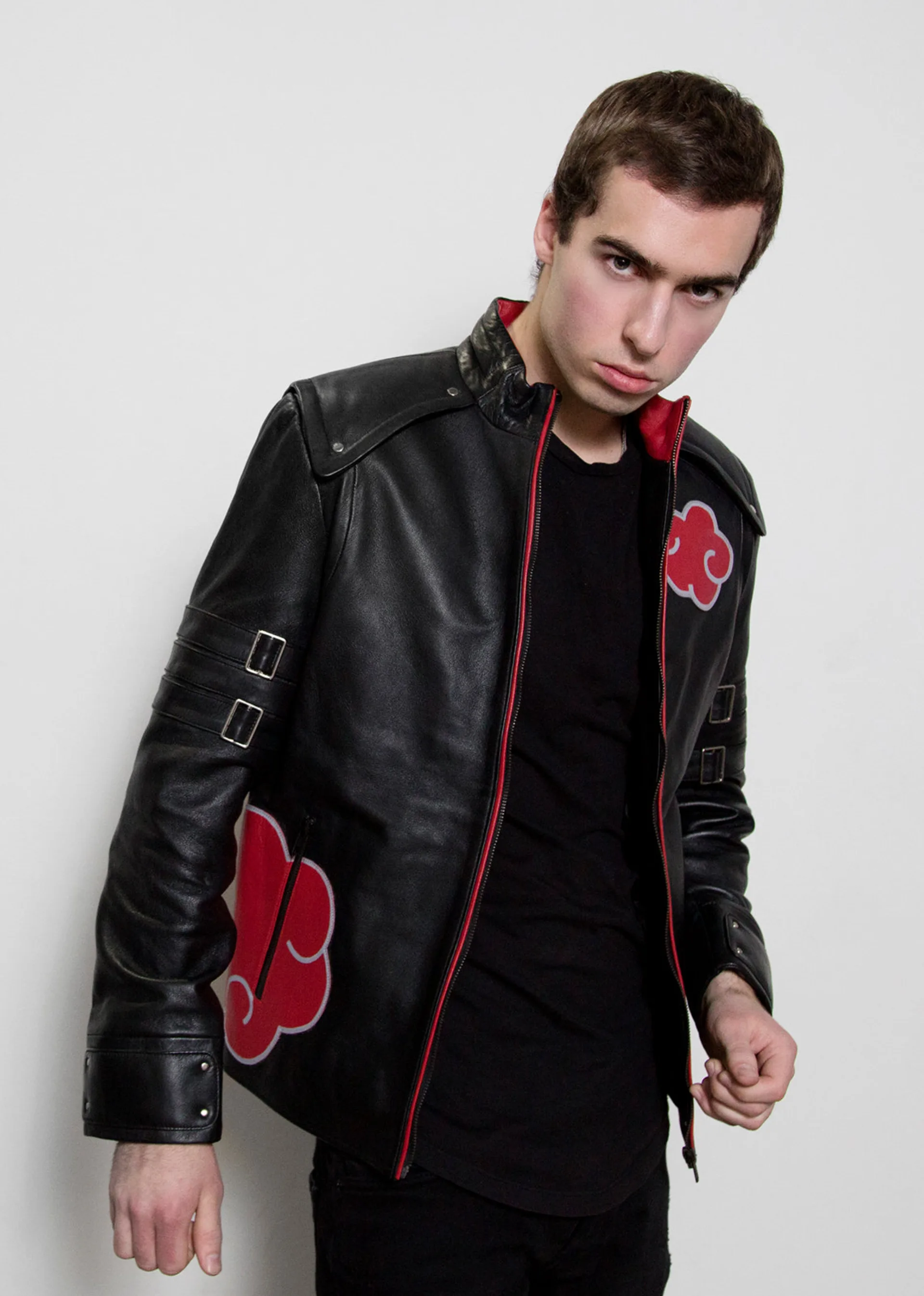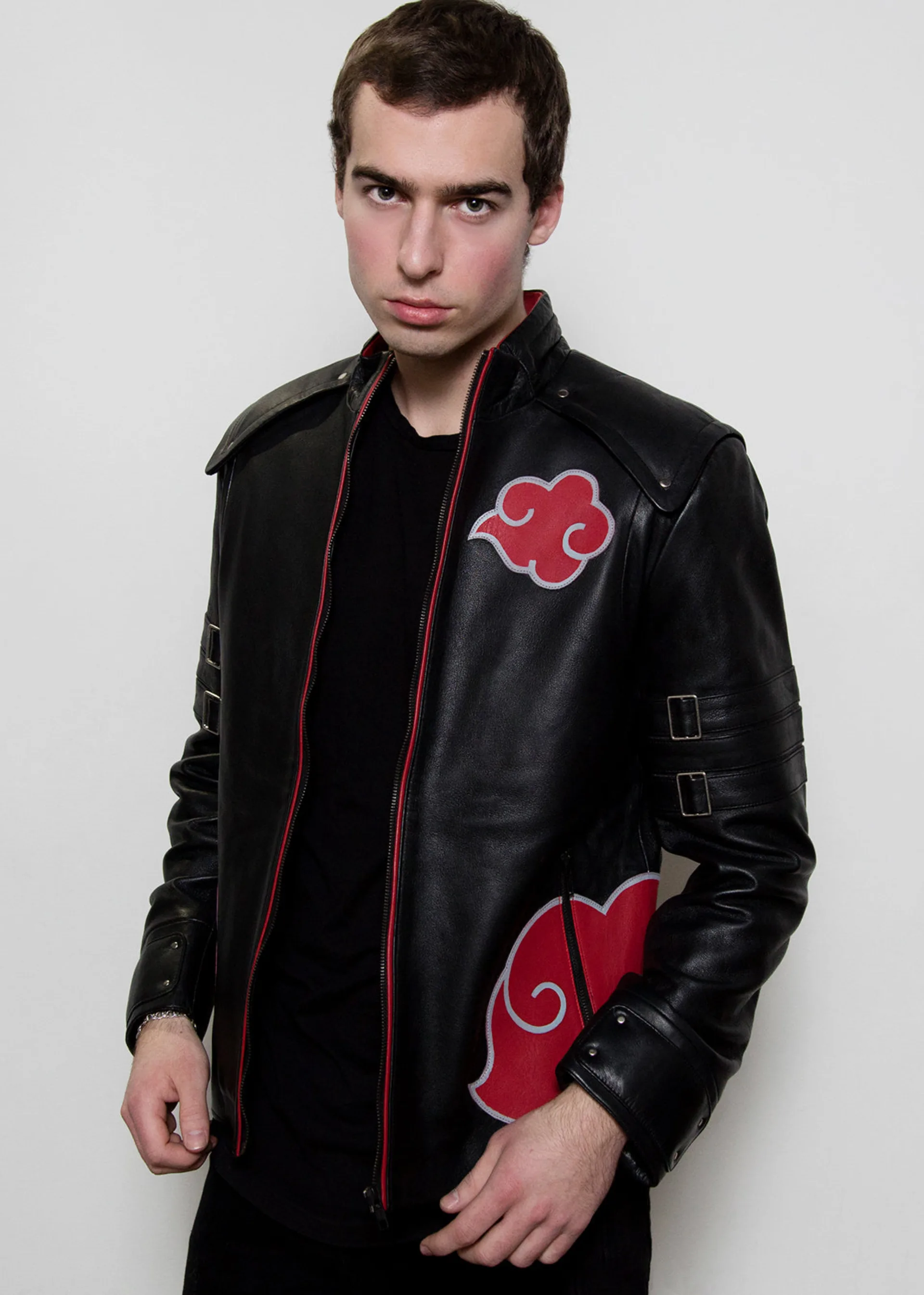 Become a member of the manga family and join the most dangerous renegade villains with this Red Cloud Leather Jacket. Inspired by Itachi and Sasuke’s black cloak in Shippuden, this leather jacket is a must-have for any anime and manga lover.